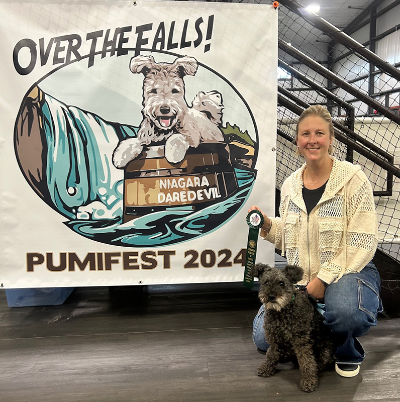 The Pumi is a fast learning, highly trainable, intelligent terrier type herding dog. He is a native breed of Hungary, where he is officially recognized as one of the “National Treasures,” a “HUNGARICUM” of the country.